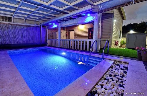 בקתה בשמורה features a sauna and a hot tub, as well as air-conditioned accommodations in Shomera, 22 miles from Bahá’í Gardens Akko. This property offers access to a terrace and free private parking. The vacation home provides a saltwater pool with a fence, as well as a spa facilities and luggage storage space. All units come with a seating area, a flat-screen TV with cable channels, and a private bathroom with bathrobes, hot tub, bath, and shower. Rooms have a coffee machine, while some rooms also boast a fully equipped kitchen with a dishwasher, an oven, and a stovetop. At the vacation home, units have bed linen and towels. For those times when you'd rather not eat out, you can cook on the barbecue. For guests with children, the vacation home offers kids pool, outdoor play equipment, and a baby safety gate. Guests at בקתה בשמורה can enjoy darts on-site, or go hiking or walking tours in the surrounding area. Rosh HaNikra grottoes is 13 miles from the accommodation, while Train Station Nahariyya is 17 miles from the property. Haifa Airport is 34 miles away.