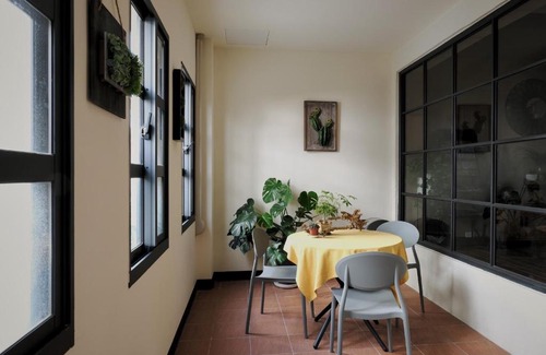 Food & DrinkTea/Coffee maker, Bottle of water, Chocolate/CookiesBathroomShower, Hairdryer, Free toiletries, Toilet, Private Bathroom, Slippers, Bathtub or shower, Towels, Toilet paper, Toothbrush, Shampoo, Conditioner, Body soapGeneralAir conditioning, Heating, Soundproof, Hardwood or parquet floors, Trash cans, Smoke Alarm, Fire extinguisher, Key access, Carbon monoxide detector, Carbon monoxide sourcesOutdoorsBalcony, PatioLiving AreaDining areaViewGarden view, Quiet street viewKitchenCleaning products, Dining tableBedroomLinensAccessibilityUpper floors accessible by stairs onlyBuilding CharacteristicsDetached, Private apartment in buildingRoom AmenitiesClothes rack, Socket near the bedSafety featuresAir purifiersPhysical distancingSingle-room AC for guest accommodationCleanliness & disinfectionHand sanitizer |