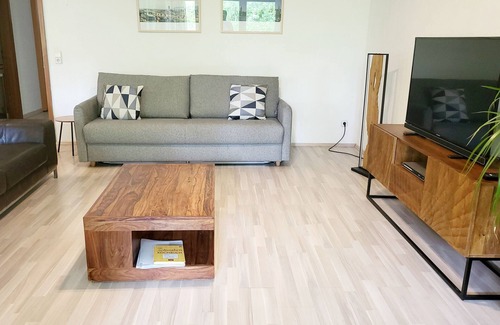 The location in this accommodation is one of the best in Tübingen! Despite the central location, it is very quiet, as it is located in the second row. A balcony complements the benefits. Free private parking is available on site. The accommodation is very spacious and a total of 75m2. It includes a fully equipped kitchen with dishwasher, fridge, microwave, kitchen appliances and Nespresso coffee machine. The living room is equipped with a dining table, a sofa bed a work desk and cable TV and is extremely generously cut with its 40m2. From the living room you can enjoy the beautiful view of the communal garden and the Tübingen Castle. The bedroom is equipped with a boxspring double bed, dresser and two large wardrobes. Towels and bed linen are provided. Offering free WiFi, the apartment is 200 meters from Tübingen town center. The apartment is 200 meters from Tübingen's Old Town, 2.4 km from the French Quarter and just 400 meters from Hohentübingen Castle. Stuttgart Airport is 21 km away. Furthermore, there is also a community garden which is located directly on a stream. The apartment is on the ground floor. We speak German, English, Russian and Ukrainian.