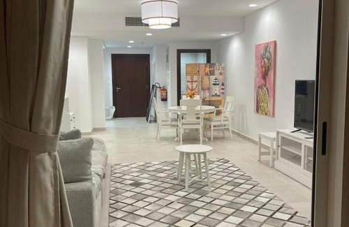 Set in Doha, Apartment with a charming view of Viva Bahriya. Offers accommodation with free WiFi, air conditioning, a restaurant and access to a garden with a year-round outdoor pool. This apartment provides free private parking and a 24-hour front desk. The apartment has 1 bedroom, 2 bathrooms, bed linen, towels, a flat-screen TV with satellite channels, a dining area, a fully equipped kitchen, and a balcony with lake views. The apartment offers a sun terrace. A children's playground can be found at Apartment with a charming view of Viva Bahriya., along with a shared lounge. Lagoona Mall is 5.4 km from the accommodation, while Qatar International Exhibition Centre is 8.5 km from the property. The nearest airport is Doha International Airport, 23 km from Apartment with a charming view of Viva Bahriya..