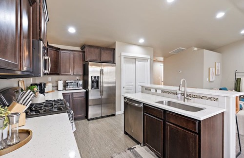 Single Level Living in a quiet neighborhood close to shopping and freeway access. This home feels better than new with no rear neighbors, open concept kitchen w/slab quartz, white subway back splash, large pantry, s/s appliances and pre-engineered hard wood floors. The home maintains privacy with split bedrooms and a luxurious master suite with dual vanities and his and her's closets. Home is fully furnished and awaiting your arrival! We offer flexible leasing options please inquire with our team to see how we can accommodate your unique housing needs.