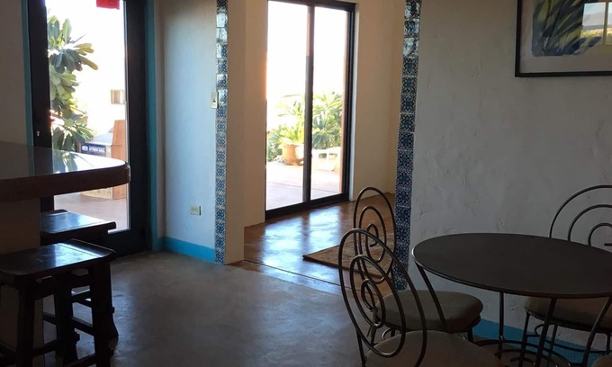 This is our 2 bedroom 1 bath at Casa Vista Cerralvo. Great kitchen with everything you need for cooking. Daily housekeeping, wifi American TV with movies. We have kayaks and paddleboards for your use. One bedroom has a king and the other a queen plus a bunk with 2 twins so can sleep up to 6 people. Great patio with lounge chairs and outside dining tables and wonderful built in lounging bed. Wonderful ocean views from everywhere. If you need more room you can rent more space on the same property at Vrbo: 195778, Vrbo: 1749445, Vrbo: 1437631, or Vrbo: 1739451