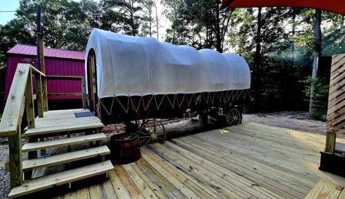 Beautiful Rustic Wagon with Modern Interior and Outdoor Hot Tub for a Unique Romantic Getaway near Lake O' the Pines, Texas is located in Ore City.