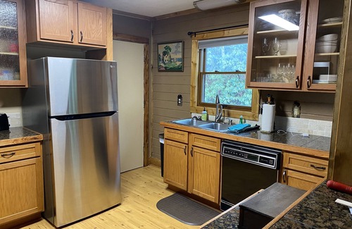 Two level cottage with master bedroom and bath on main level, spacious kitchen, large, cozy den with old stone gas fireplace and ample dining area. Panoramic view of Grandfather from most rooms.