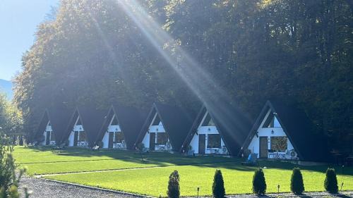 Căsuțele de sub pădure is located in Avrig, just 26 miles from Făgăraș Fortress and 31 miles from Union Square. There's a sun terrace and guests can use free Wifi and free private parking. The air-conditioned campground consists of 1 bedroom, a living room, a fully equipped kitchen with a microwave and a coffee machine, and 1 bathroom with a shower and slippers. Towels and bed linen are offered in the campground. The property has an outdoor dining area. Outdoor play equipment is also available at the campground, while guests can also relax in the garden. Sibiu International Airport is 34 miles from the property.