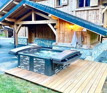 25 miles from Rochexpo in Samoëns, Chalet luxe L'HIBISCUS features accommodations with access to a hot tub. Housed in a building dating from 2020, this chalet offers free Wifi and free private parking. The property provides barbecue facilities and outdoor furniture. Leading onto a balcony with garden views, the spacious chalet consists of 4 bedrooms. Offering a terrace with mountain views, this chalet also has a flat-screen TV, a well-equipped kitchen with a dishwasher, an oven, and a microwave, as well as 4 bathrooms with a hot tub and a hair dryer. There's also a seating area and a fireplace. During the colder months, guests can enjoy winter sports in the surrounding area. Guests can also relax in the garden.