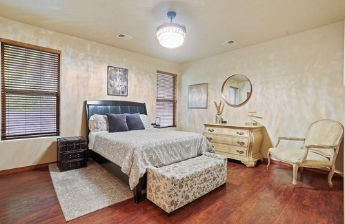 Get ready to relax in this marvelous 4-bedroom house in Ruidoso. With 1 king bed and 3 queen beds, this cozy retreat offers a jetted bathtub, shower, and bathtub in 3 bathrooms. The living room includes 1 queen bed and 1 futon for additional space. Our place will help you feel at home while you're traveling in Ruidoso and provide enough space for family meals and fun times. Please note that during the winter season, a 4x4 is needed to go up driveway.