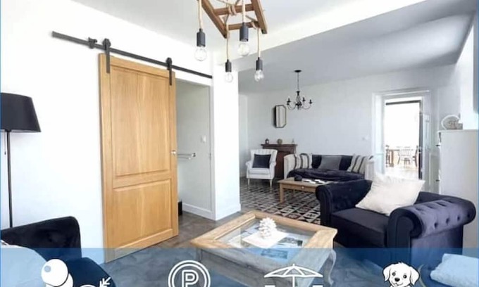 - La clairiere Maison spacieuse rénovée joliment décorée tout confort 12 p 2 sdb 2 wc grand jardin clos, belle terrasse aménagée, parking privatif, ping pong baby foot proche Omaha Beach et Bayeux