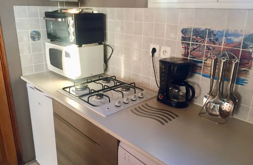 The cottage is located on a property of 2000m2 + and attached to the main house. the access to the cottage is separated from the main house occupied by the owners with a parking lot. It also has a beautiful garden with a heated pool, secured and private, a terrace of 30m2, BBQ, pergola and garden furniture. Inside on 40m2, the cottage gets a climatisation system, and is composed of 2 bedrooms (bed 160x200 and 2 single beds 90 or double bed 140) and a room with open kitchen and a bathroom with toilet. Well equipped.