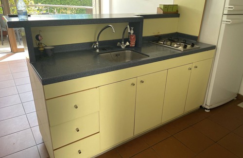 Ground floor: equipped kitchenette, laundry area, living room with tv, guest bathroom, a nice balcony.