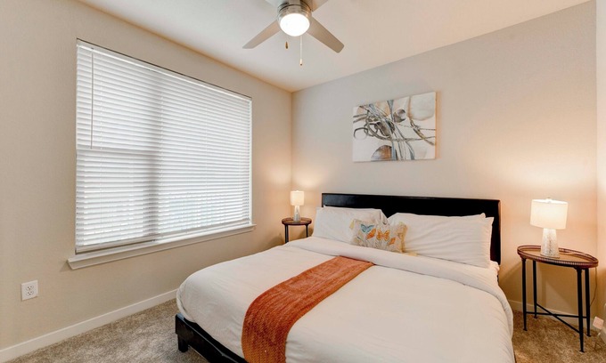This Austin apartment boasts 2 inviting bedrooms with 2 king beds. Enjoy the amazing amenities like AC, heating, hair dryer, iron, and a fitness room. The 2 bathrooms feature a bathtub, hair dryer, and bidet for added comfort. Make your holiday one for the books with a stay at our place.