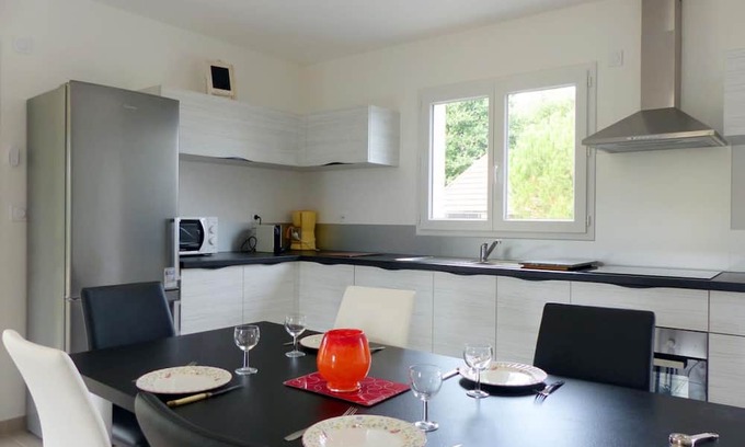 Flat screen TV, Barbecue or plancha, Optional cleaning, Washing machine, Dishwasher, Optional sheets, Baby bed, Enclosed land, Single storey, Electric heating, Garden furniture, Microwave, Flat screen TV, Terrace, Garden, Pets allowed, Freezer, Owner on site, Long term rental, ok 1 month, Last minute rental, Individual house, Parking.