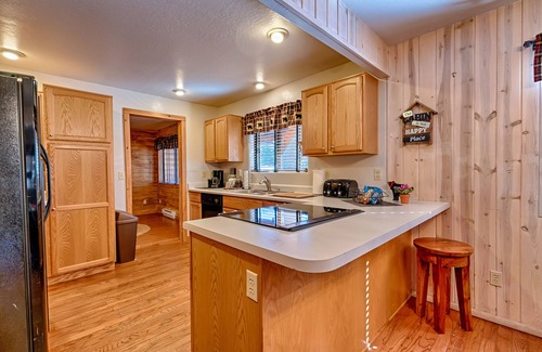 The cabin has 3 bedrooms, 2 baths and a loft with pull out queen sofa bed, living area w fireplace, game room, large kitchen and laundry.