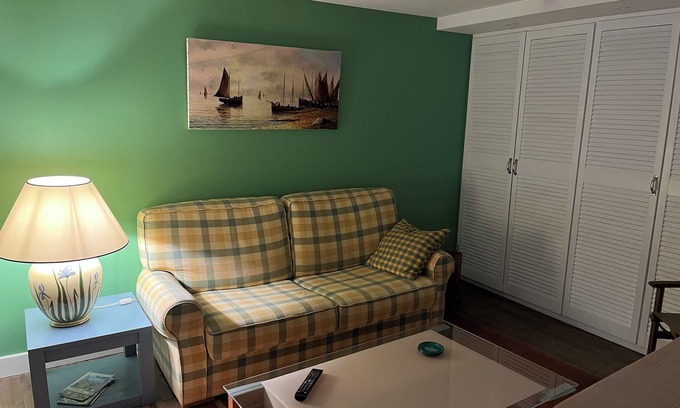 An ideal nest for a romantic vacation, featuring a large living room with an open kitchen and lounge of approximately 28 m², a large bedroom with a fireplace, a very comfortable king-size bed (160x200), a bathroom with a shower and sink, a separate toilet, and a south-facing outdoor terrace. Additional sleeping space for friends or children is available on a 140 cm x 190 cm sofa bed located in the lounge area.
