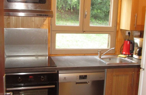 Large chalet on 2 levels in the middle of a 2000m2 plot. On the first floor, a living room, a kitchen, two bedrooms and a bathroom. On the ground floor two bedrooms and a shower room. Communication between the ground floor and the first floor takes place from the outside. The chalet is equipped with a dishwasher, a washing machine, a dryer ...