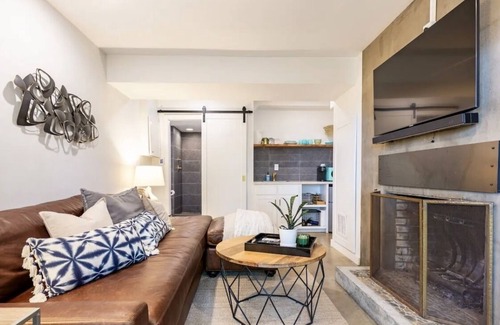 Cosmopolitan and whimsical, this modern chalet offers privacy and tranquility with winter mountain and city views. Nestled in the well-established community of North Asheville, just over 3 miles to downtown, and a mile to The Grove Park Inn. Main level boasts a natural light-filled open floor plan, sleek eat-in kitchen with breakfast bar, dining/living area with fireplace and deck to take it all in. Laundry and access to the outdoor patio with hot tub. Pack your bags as your city retreat awaits!