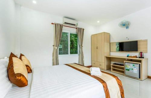 Located in Phú Quốc, a 7-minute walk from Long Beach, Mộc Lam Bungalow Phú Quốc has accommodations with an outdoor swimming pool, free private parking, a garden and a shared lounge. This 4-star hotel offers room service and a tour desk. The property provides a 24-hour front desk, airport transportation, a shared kitchen and free WiFi. At the hotel, rooms are equipped with a deskand a balcony with a pool view. Complete with a private bathroom equipped with a shower and free toiletries, the rooms at Mộc Lam Bungalow Phú Quốc have a flat-screen TV and air conditioning, and some rooms contain a terrace. At the accommodation, each room includes a seating area. À la carte and Asian breakfast options are available at Mộc Lam Bungalow Phú Quốc. The hotel has a grill. Sung Hung Pagoda is 2.2 miles from Mộc Lam Bungalow Phú Quốc, while Vinpearl Land Phu Quoc is 16 miles from the property. Phu Quoc International Airport is 1.2 miles away.