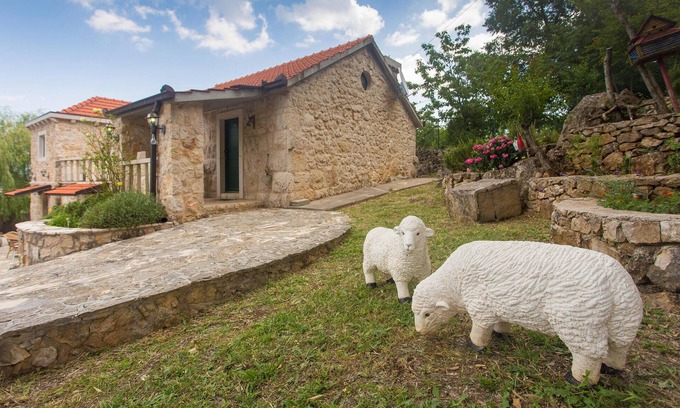 Once an old stone property, now in a new light, renovated in authentic Dalmatian style and adapted to all standards of modern life. It consists of three facilities in one, on the ground floor is the living room with an old Dalmatian tavern with fireplace, ideal for socializing, and upstairs is a large living room and bedrooms. Just a few steps away are two other buildings, one of which consists of two apartments, connected by an external staircase, and the other is designed as a bedroom with bathroom. There is also a large swimming pool surrounded by Mediterranean plants and a variety of entertainment content, with beautifully designed sun terrace and magnificent views of the landscape of the Dalmatian hinterland. Visit the city of Split and enjoy a tour of the historic Diocletian's Palace.