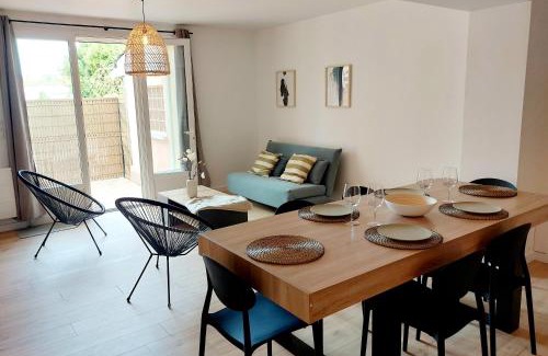 Odos Tarbes Très beau T3 avec petite terrasse et pkg offers accommodations in Odos, 13 miles from Lourdes Train Station and 15 miles from Basilica of Our Lady of the Rosary. This property offers access to a terrace and free private parking. Outdoor seating is also available at the apartment. With free Wifi, this 2-bedroom apartment features a flat-screen TV, a washing machine, and a fully equipped kitchen with a dishwasher and oven. Towels and bed linen are offered in the apartment. For added privacy, the accommodation features a private entrance. Palais Beaumont is 25 miles from Odos Tarbes Très beau T3 avec petite terrasse et pkg, while Zénith-Pau is 25 miles from the property. Tarbes Lourdes Pyrénées Airport is 3.7 miles away.