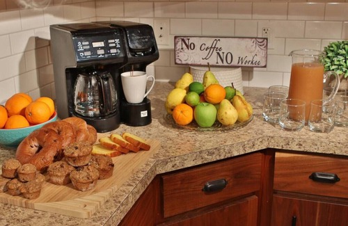 Fully Equipped Kitchen – Pots, pans, utensils, dishes, glassware, coffee maker, and more