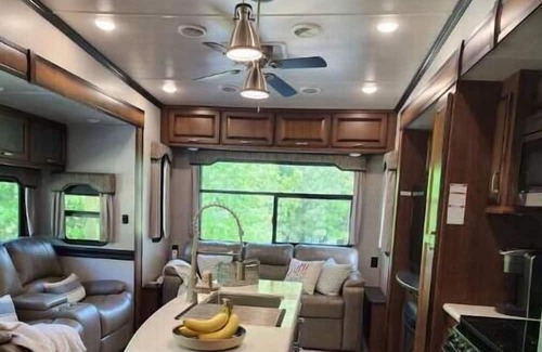 Well kept and clean camper with spacious living area. Master bedroom offers an extremely comfortable memory foam bed and deluxe bedding. There are 2 pull out sofa beds. I recommend adults sleeping on the queen pullout in the living room. Kids and teens best suited for the tv room and loft area.
