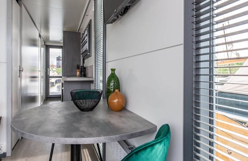 Waterlodge has the following layout: living area (cabin) with laminate flooring and television (Digitenne), kitchen area (galley) with electric 2-burner stove, combination microwave and fridge with freezer compartment. The master bedroom (cabin 1) has a double bed (1.60 meters wide) with a double duvet, a storage cupboard and a safe. The children's bedroom (cabin 2) has a bunk bed and storage cupboards. The bathroom is luxurious and equipped with a shower, sink and toilet.